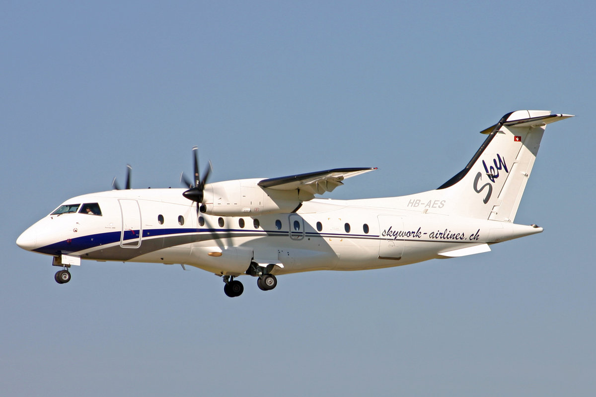 Skywork Airlines, HB-AES, Dornier, DO-328-110, msn: 3021, 04.Juli 2005, ZRH Zürich, Switzerland.