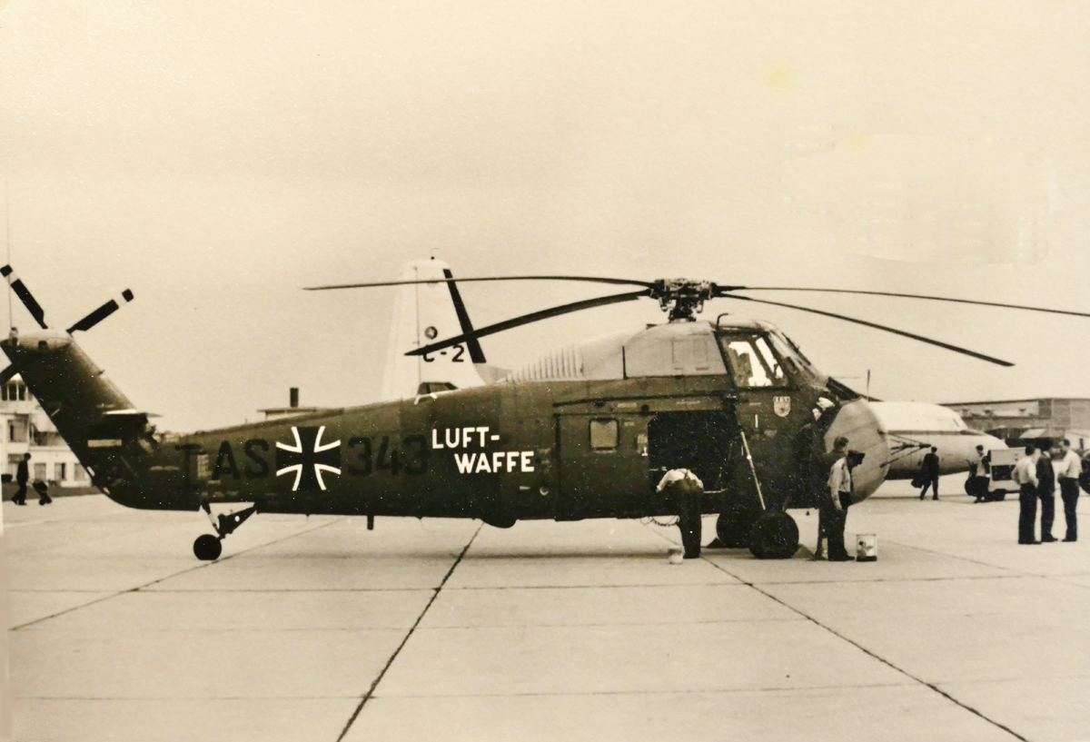Uraltfoto vom 15.07.1963. Sikorsky H 34 (S 58) der Luftwaffe, AS+343 bei der Zwischenlandung auf dem Militärflughafen Ypenburg in den Niederlanden.
