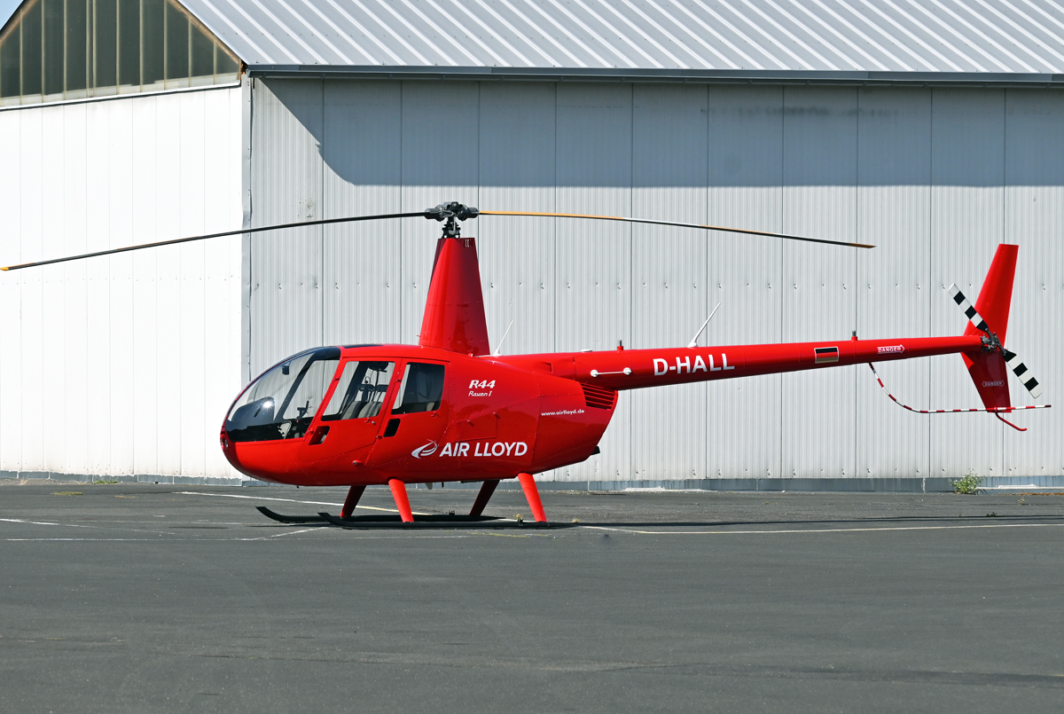 Robinson R 44 Raven I, D-HALL, an der AirLloyd-Halle in EDKB - 19.09.2020
