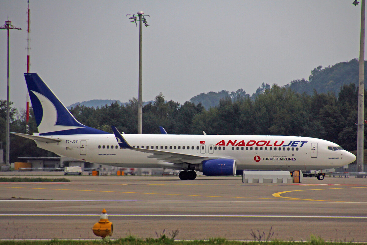 AnadoluJet, TC-JGY, Boeing 737-8F2, msn: 35738/2592, "Manavgat", 26.September 2021, ZRH Zürich, Switzerland.