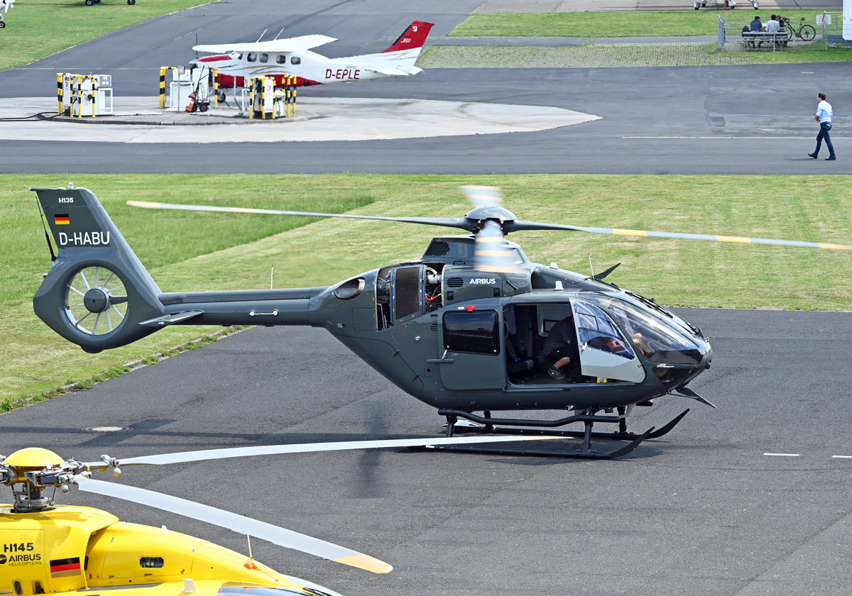 Air Bus H 135, D-HABU, Leasinghubschrauber für die Heeresflieger vor der ADAC-Halle in EDKB - 10.06.2021