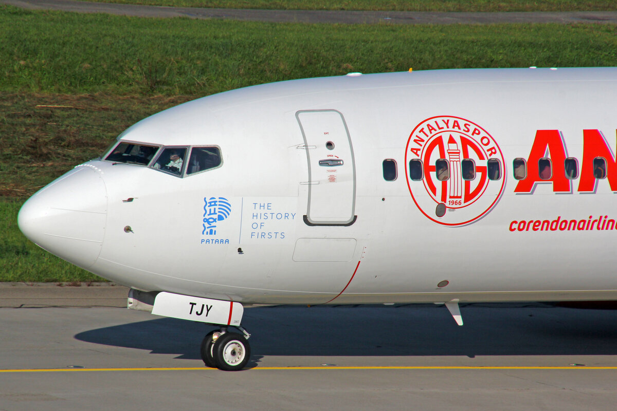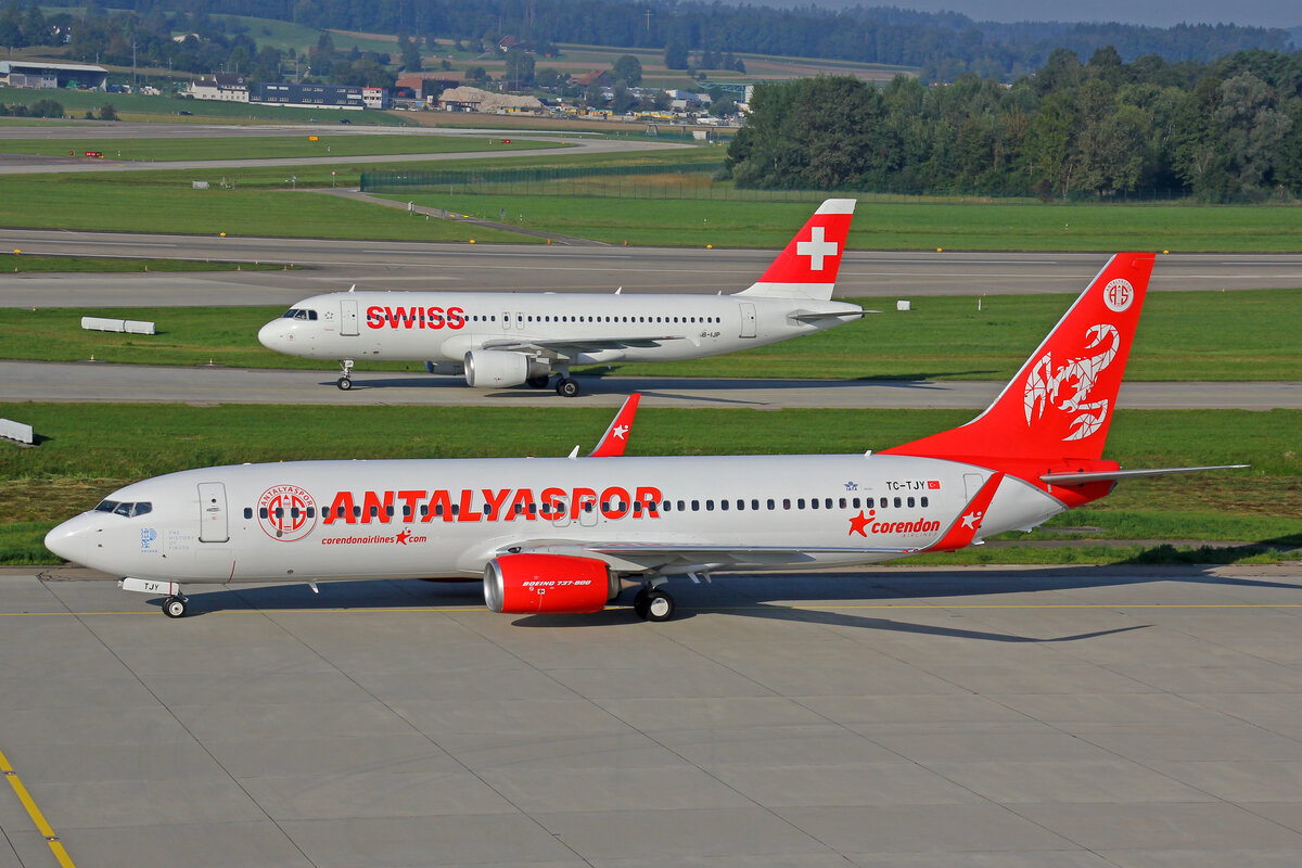 Corendon Airlines, TC-TJY, Boeing 737-8AS, msn: 34991/3780, "Antalya Spor", 04.September 2021, ZRH Zürich, Switzerland.