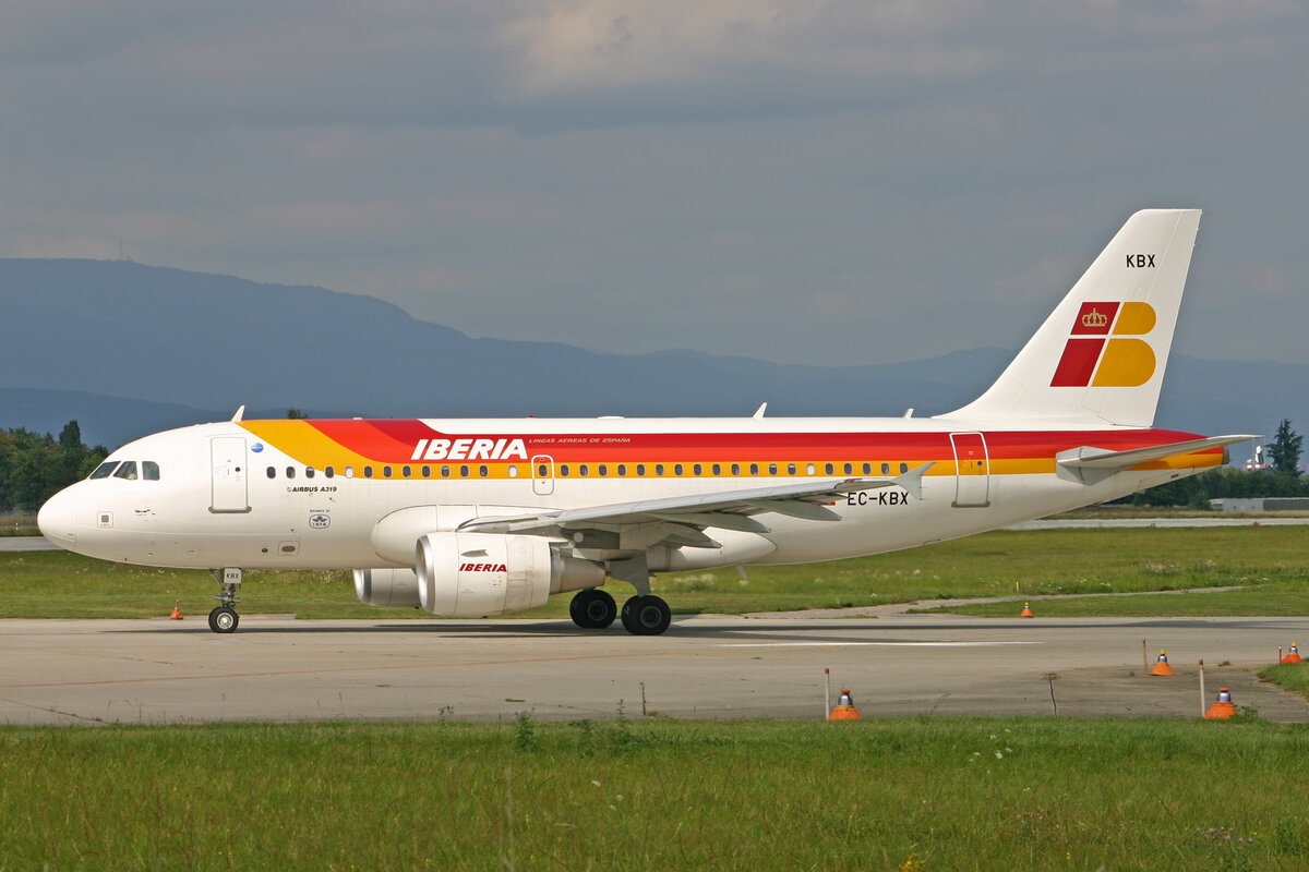 Iberia, EC-KBX, Airbus A319-111, msn: 3078, "Oso Pardo", 01.September 2007, GVA Genève, Switzerland.