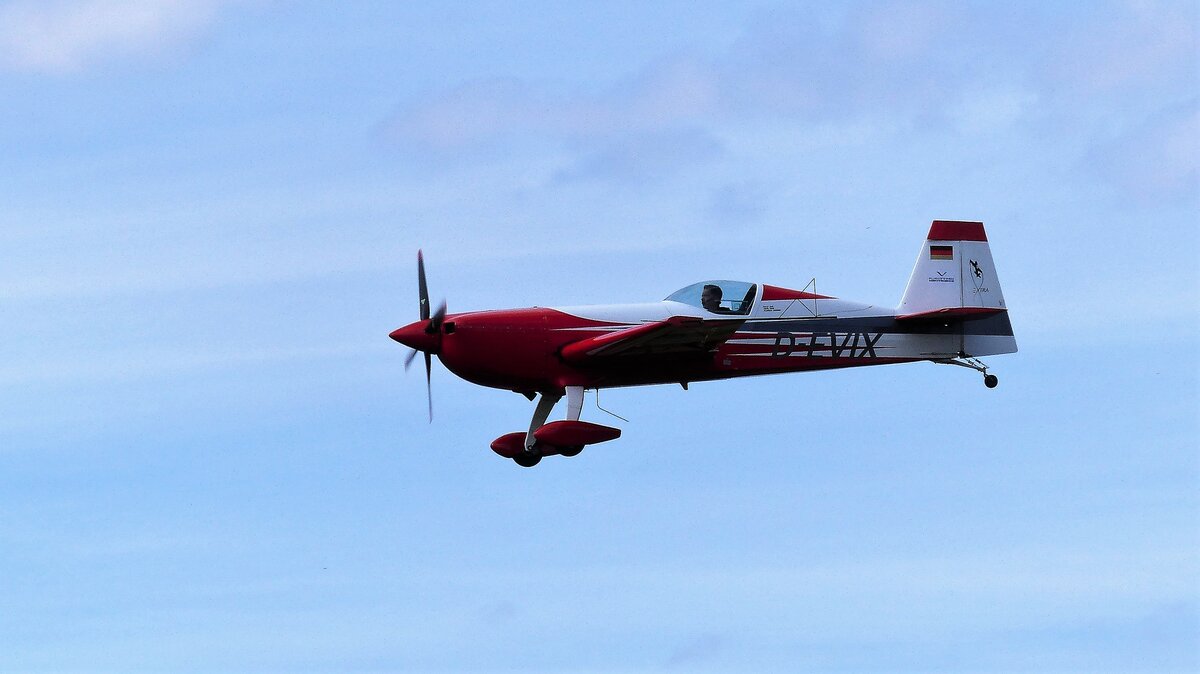 Der deutsche Meister 2022 im Motorkunstflug (unlimited) heißt Florian Bergér. Hier bei der Landung in seiner Extra 330SC D-EVIX am 6.7.2022 auf der Piste 24 in Gera (EDAJ).