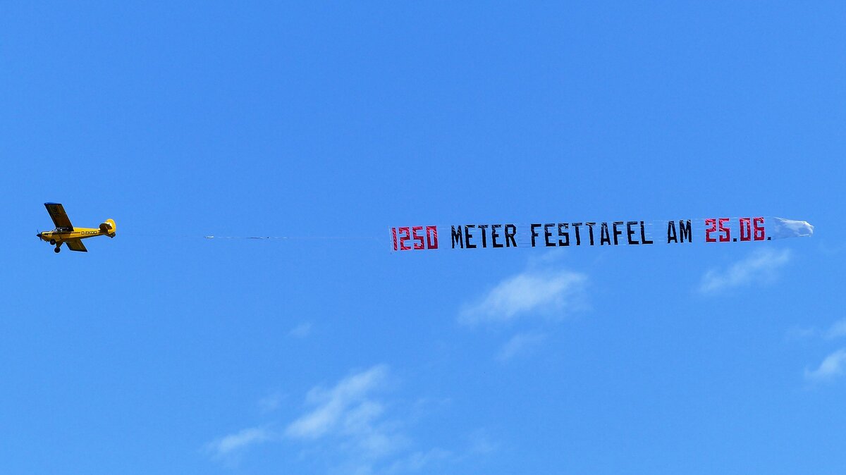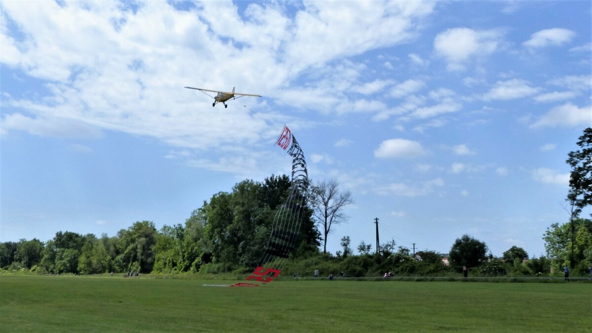 Aviat Aircraft Husky A-1B beim Bannerschlepp über Moosburg am 4.6.2022