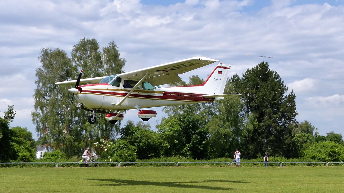 Cessna 172 Skyhawk, D-EFZH vor der Landung in Moosburg auf der Kippe (EDPI) am 4.6.2022