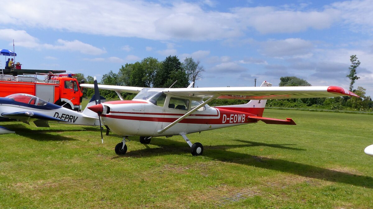 Cessna 172 Skyhawk, D-EOWB auf dem Flugplatz Moosburg auf der Kippe (EDPI) am 4.6.2022