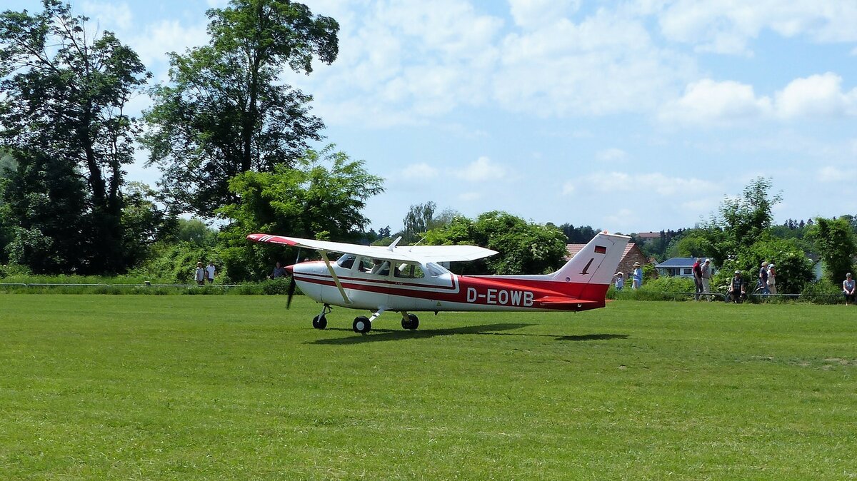 Cessna 172 Skyhawk, D-EOWB beim Start in Moosburg auf der Kippe (EDPI) am 4.6.2022