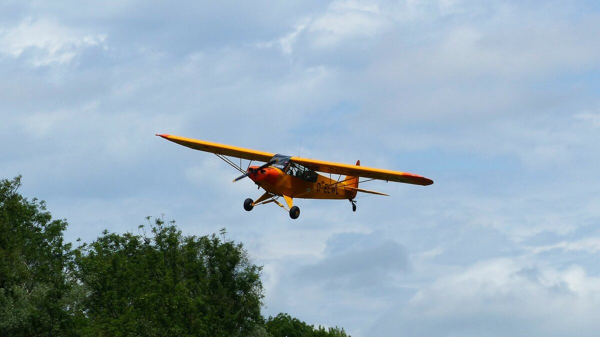 Piper PA 18 Super Cub, D-EEWL vor der Landung in Moosburg auf der Kippe (EDPI) am 4.6.2022