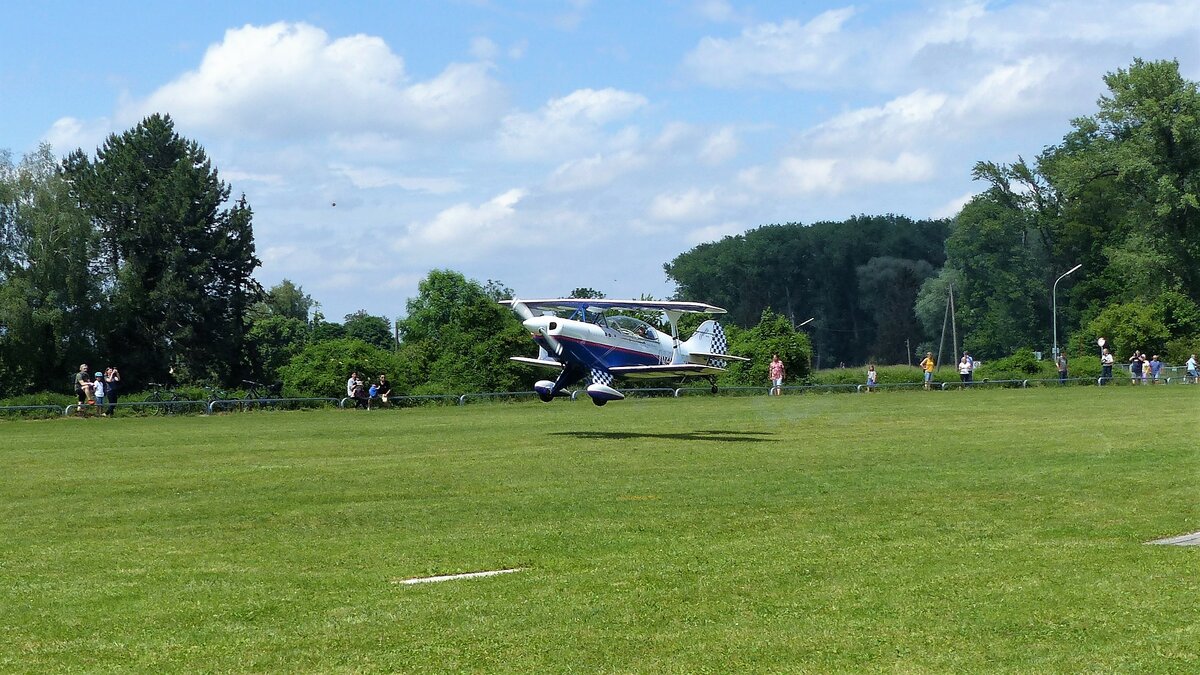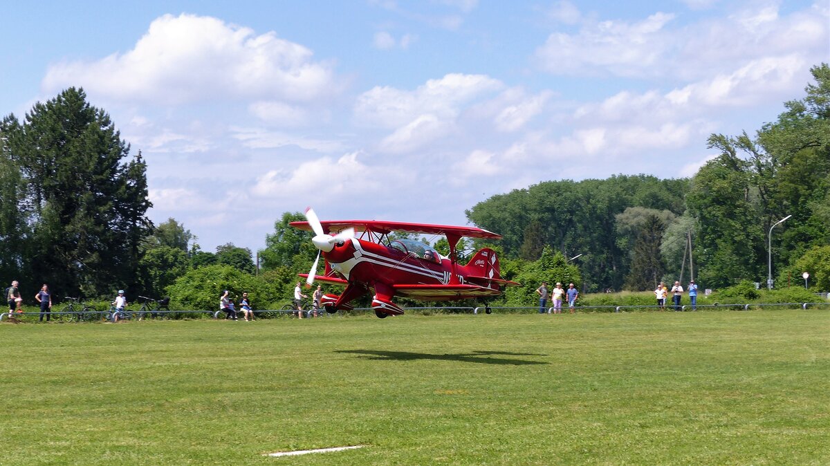 Pitts S2A, N48KA bei der Landung in Moosburg auf der Kippe (EDPI) am 4.6.2022