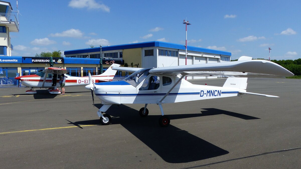 Tecnam P 92 Echo, D-MNCN auf dem Vorfeld in Gera (EDAJ) am 15.5.2022
