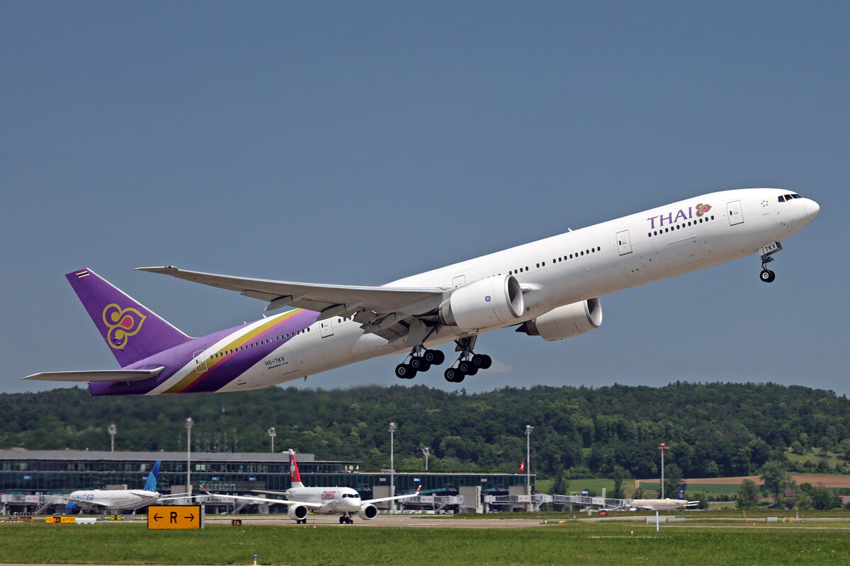 Thai Airways, HS-TKV, Boeing B777-3D7ER, msn: 42111/1215, "Suchitra / สุจิตรา", 29.Mai 2023, ZRH Zürich, Switzerland.