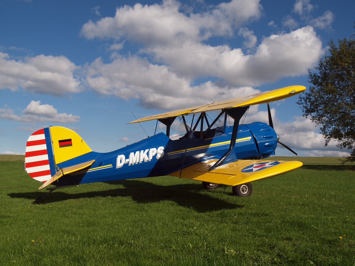 Quax, Boeing Stearman ,N2S-3, D-EQXL, in der Nähe des Flugplatz Bienenfarm, 13.05.2023