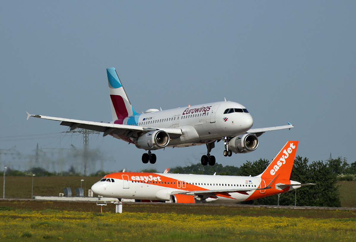 Eurowings Malta, Airbus A 319-132, 9H-EXW, Easyjet Europe, Airbus A 320-214, OE-IJK, BER, 18.05.2023