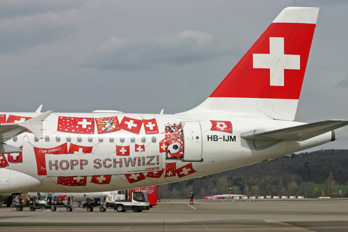 SWISS International Air Lines, HB-IJM, Airbus A320-214, msn: 635, Sonderbemalung Fussball EM 2008, Hop Schwiiz/Hop Suisse, 12.Mai 2008, ZRH Zürich, Switzerland.