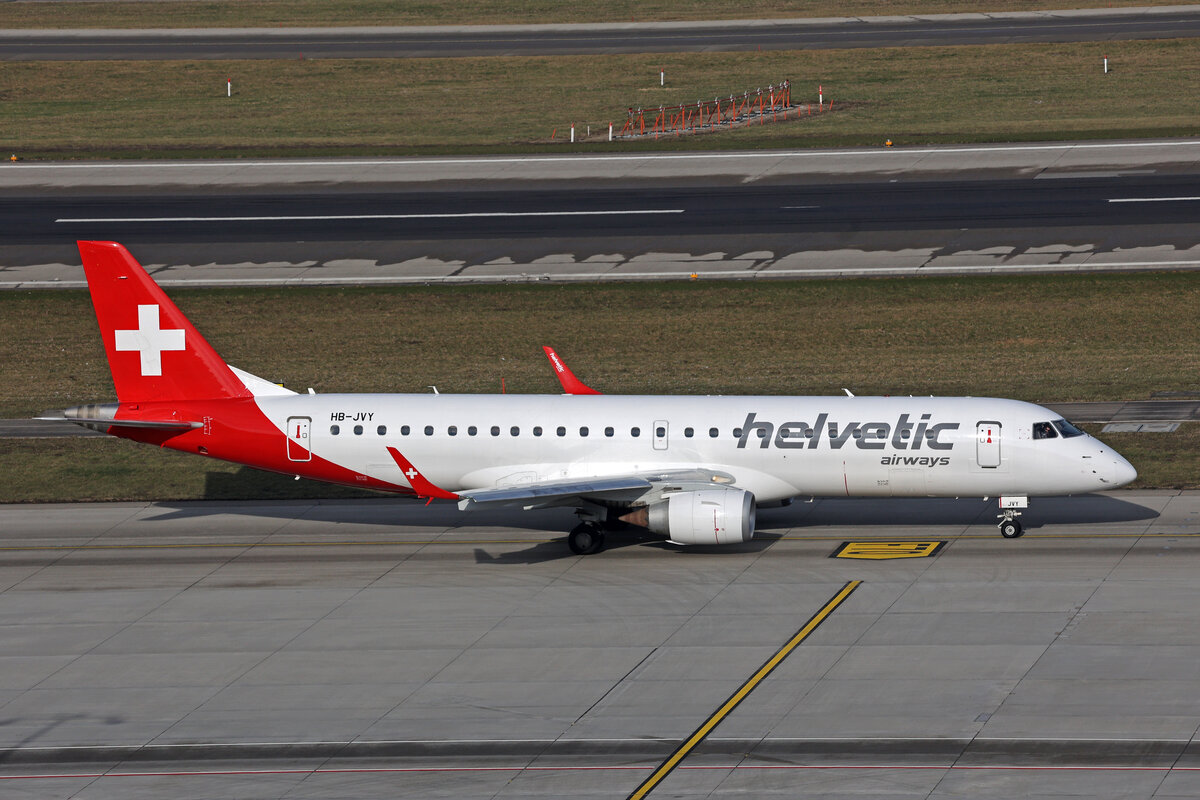 Helvetic Airways, HB-JVY, Embraer ERJ-190LR, msn: 19000607, 16.Januar 2024, ZRH Zürich, Switzerland.