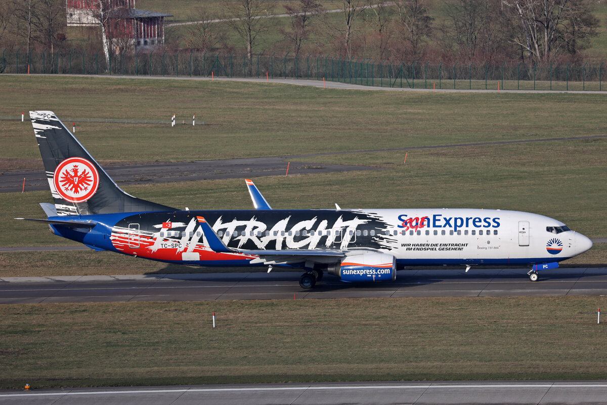SunExpress, TC-SPC, Boeing B737-8AS, msn: 34984/3587, "Eintracht Frankfurt", 16.Januar 2024, ZRH Zürich, Switzerland.