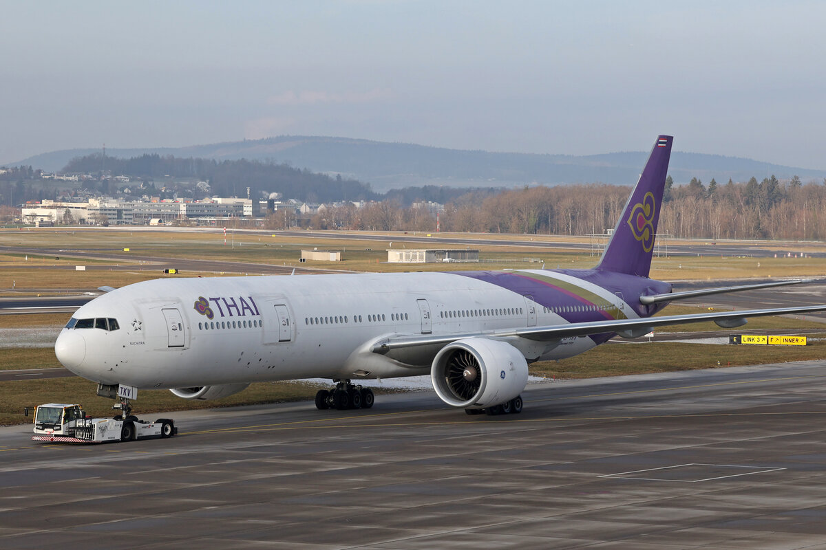 Thai Airways, HS-TKV, Boeing B777-3D7ER, msn: 42111/1215, "Suchitra / สุจิตรา", 16.Januar 2024, ZRH Zürich, Switzerland.
