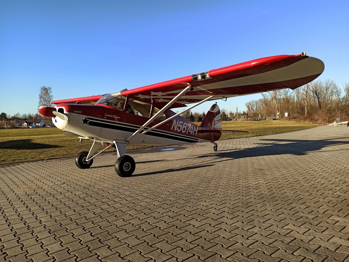 Piper PA 16 Clipper ( Baujahr 1949 ), N5674H nach jahrelanger Restaurierung bereit für den ersten Hüpfer am 27.1.2024 in Moosburg auf der Kippe (EDPI)