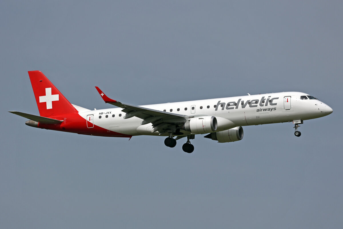Helvetic Airways, HB-JVX, Embraer ERJ-190LR, msn: 19000603, 30.April 2024, ZRH Zürich, Switzerland.