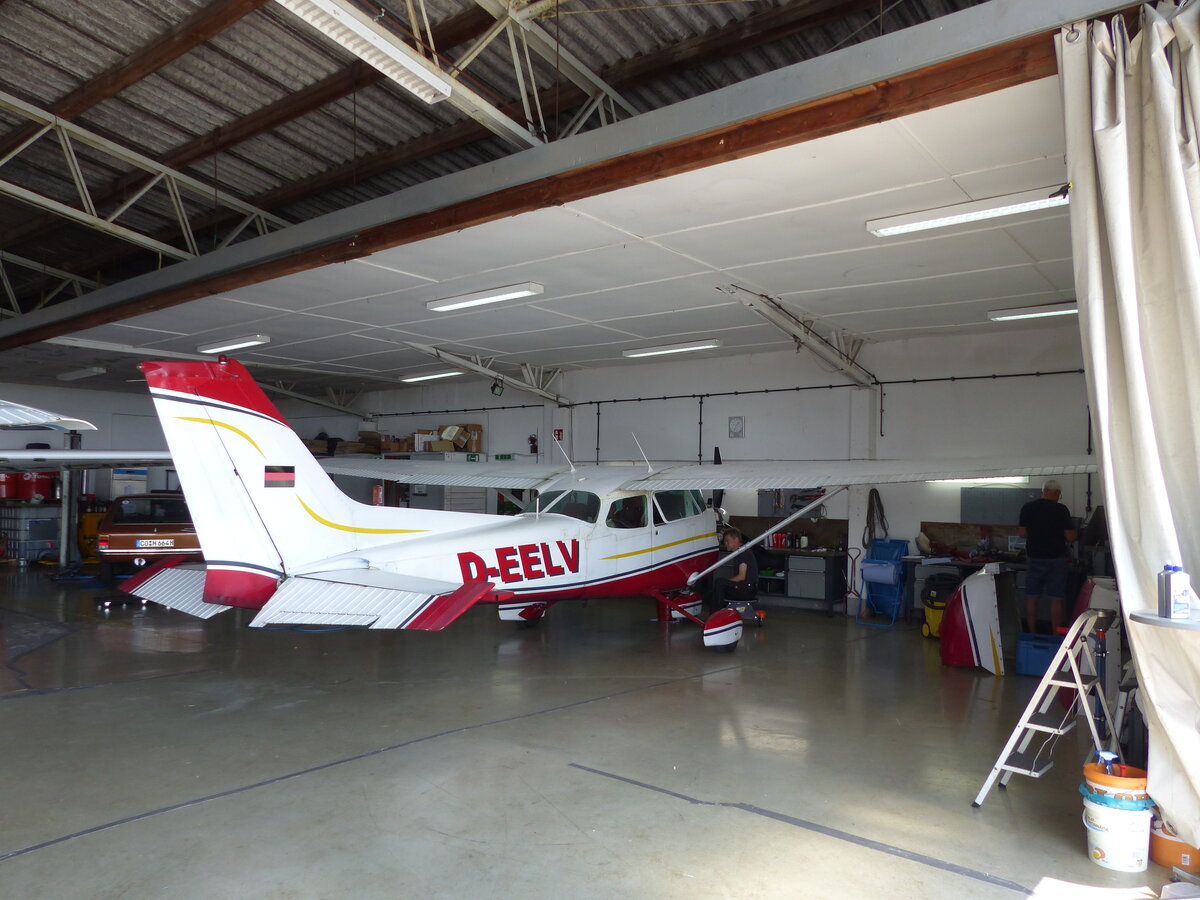 Cessna 172N Skyhawk, D-EELV in der Technikhalle Coburg-Brandensteinsebene (EDQC), 20.7.2024