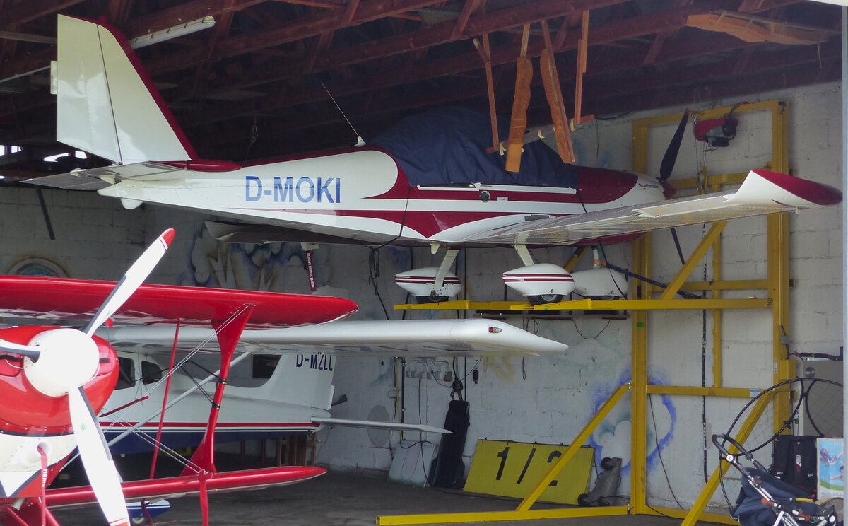 Evektor EV 97 EuroStar, D-MOKI im Hangar von Coburg-Steinrücken (EDQY) am 20.7.2024