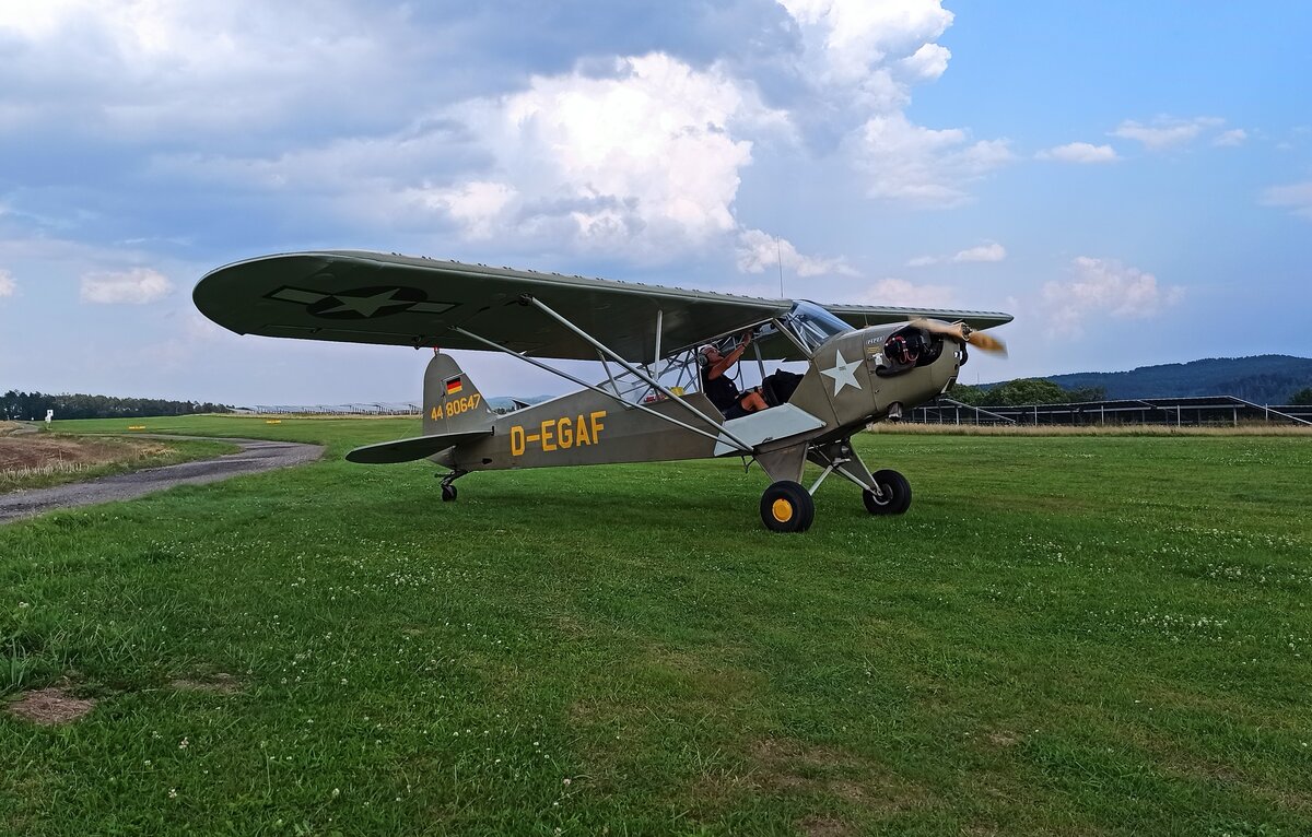 Piper J-3C-65 Cob, D-ELUM, Flugplatz Coburg-Brandensteinsebene (EDQC), 20.7.2024
