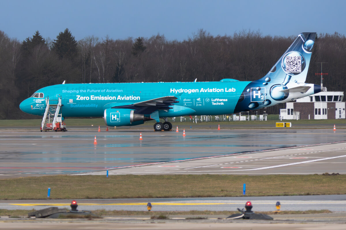 Die ex "D-AIQF" - Airbus A320-200 steht in der Lufthansa Werft Hamburg als Wasserstoff-Versuchslabor - ein Gemeinschafrsprojekt von Lufthansa, Airbus und Hamburg Airport - 15.03.2023