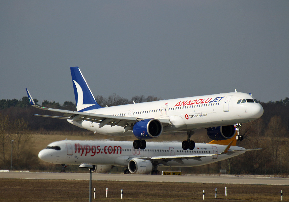 Anadolujet, Airbus A 321-271NX, TC-LTT, Pegasus, Airbus A 321-251NX, TC-RBO,BER, 03.03.2024