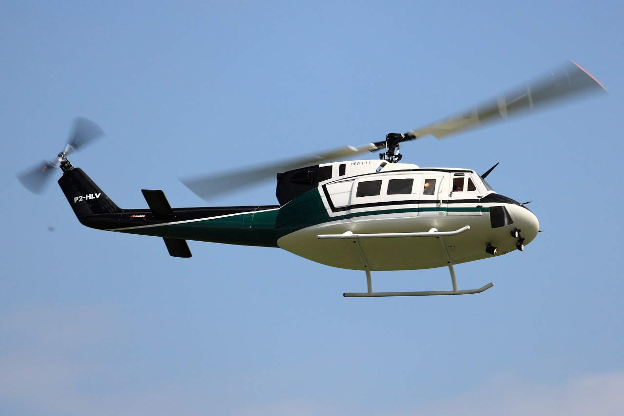Bell 212 - Modell in den Farben der HeavyLift Cargo Airlines mit Registrierung P2-HLV. Flugplatzfest Ailertchen (EDGA), 20.05.2024.