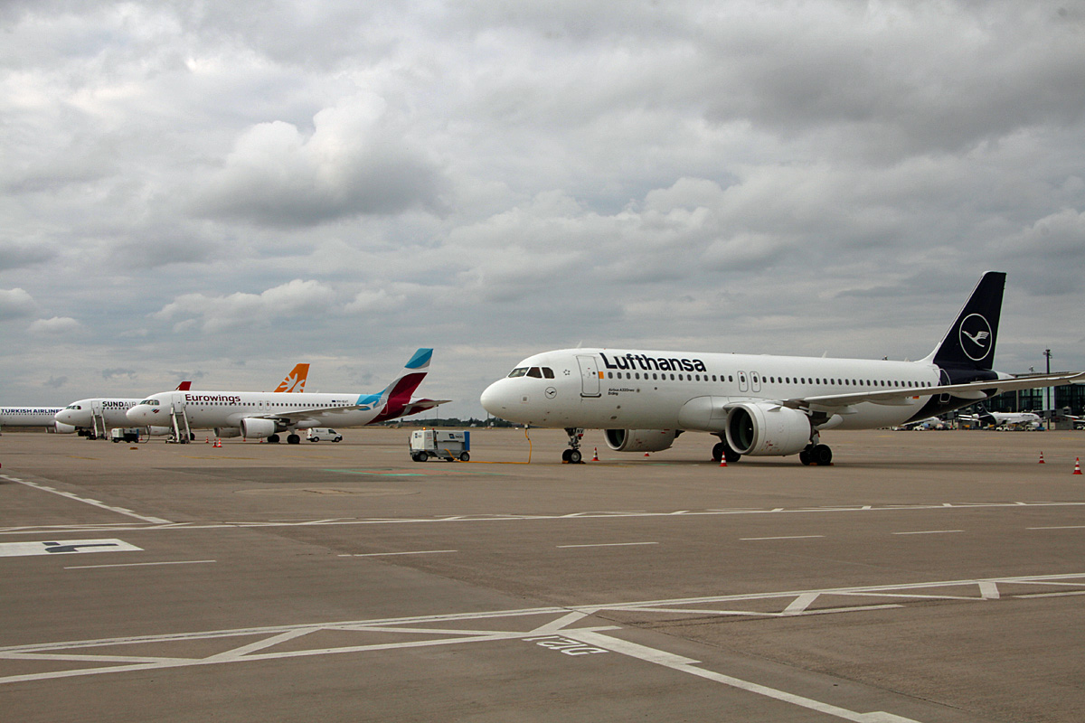 Eurowings, Airbus A 319-112, D-ABGJ, Lufthansa, Airbus A 320-214, D-AIZB "Norderstedt", BER-Spottertour, 15.07.2025