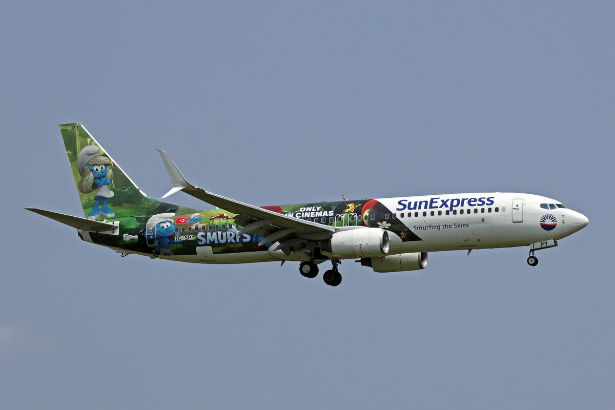 SunExpress, TC-SPY, Boeing B737-8EH, msn: 35842/3639, "The Smurfs (Movie)", 09.Juni 2025, ZRH Zürich, Switzerland.
