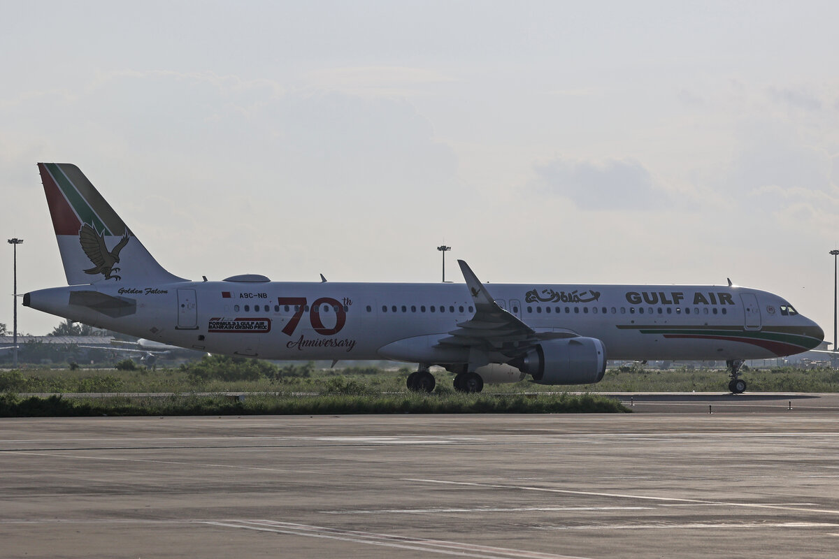 Gulf Air, A9C-NB, Airbus A321-253NX, msn: 10169, "1976 retro" special colours, 22.Dezember 2024, MLE Malé, Maldives.
